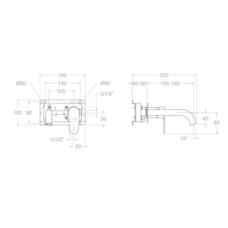 Ramon Soler Alexia baterie lavoar incastrata perete pipa 19 cm crom