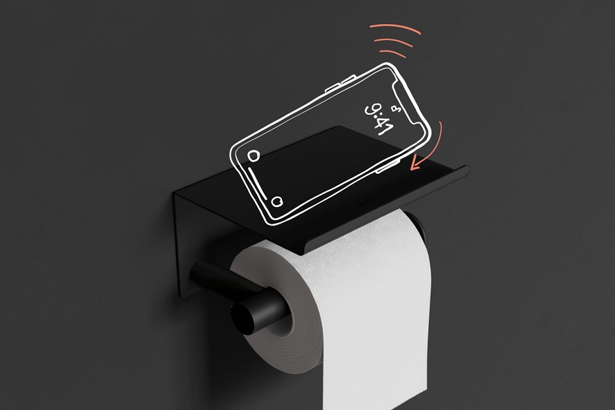 Nici functionalitatea produselor nu este uitata in contextul vietii cotidiene. Considerand faptul ca dupa studii internationale 75% dintre noi mergem cu telefonul la baie, putem observa suport de hartie igienica cu un capac plan pentru a putea aseza telefonul pe el. Sau vedem un dozator de sapun cu montaj pe perete si indicator de nivel. Etajera are si o racleta cu care poti sterge aburii de pe oglinda.