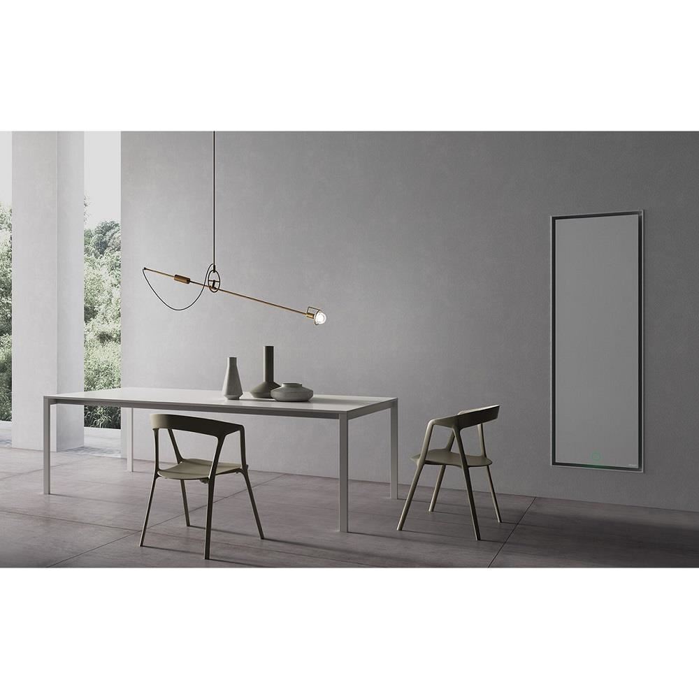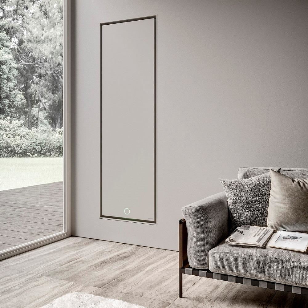 Caloriferul este tip panou radiant din otel vopsit sau cu finisaje exclusive din otel inoxidabil. Cadrul din aluminiu vopsit, cu design deosebit, asigura o distributie perfecta a aerului si o eficienta maxima. Iar ventilatoarele incastrate ii adauga putere.