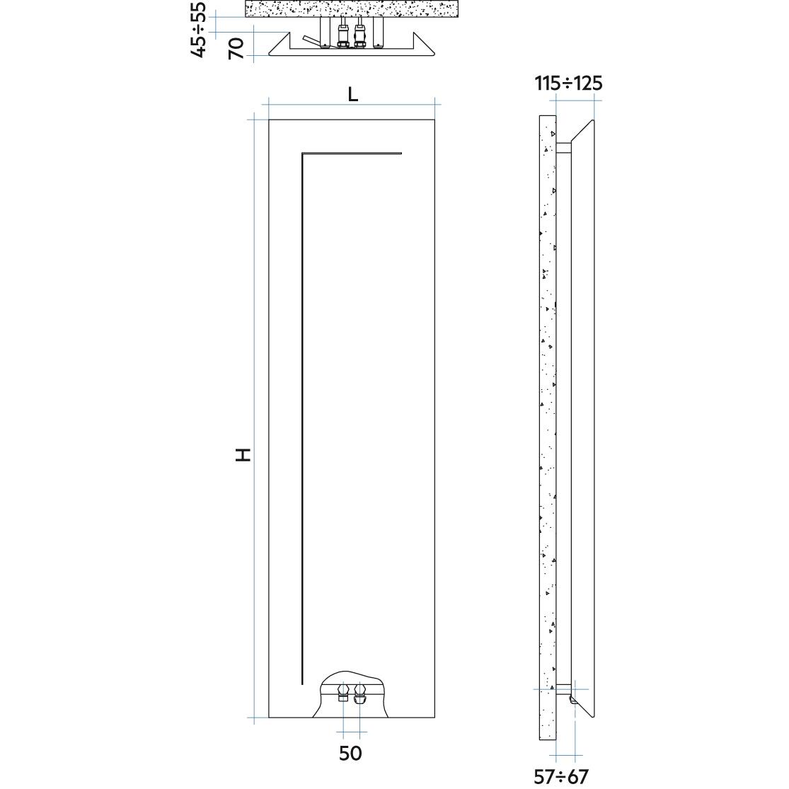 Acest radiator decorativ are inaltimea de 1800 cm si latimea de 50 cm. Poate fi achizitionat cu sau fara lumina. In varianta iluminata se primeste si o telecomanda care permite alegerea culorii dorite dintr-o vasta gama disponibila. Corpul radiatorului poate fi si el personalizat in diverse nuante RAL.