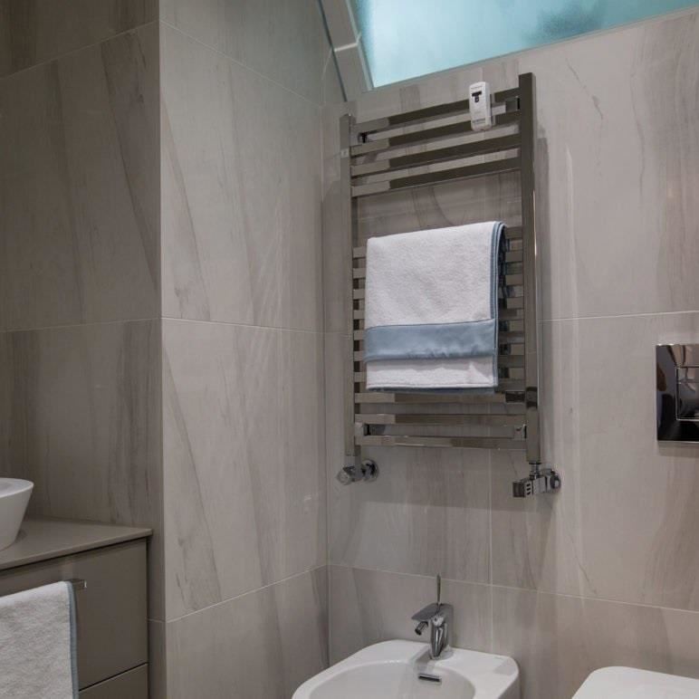 Caloriferul portprosop Right de la DELTACALOR creeaza geometrie pura prin alternanta de plin si vid, de lumini si umbre.