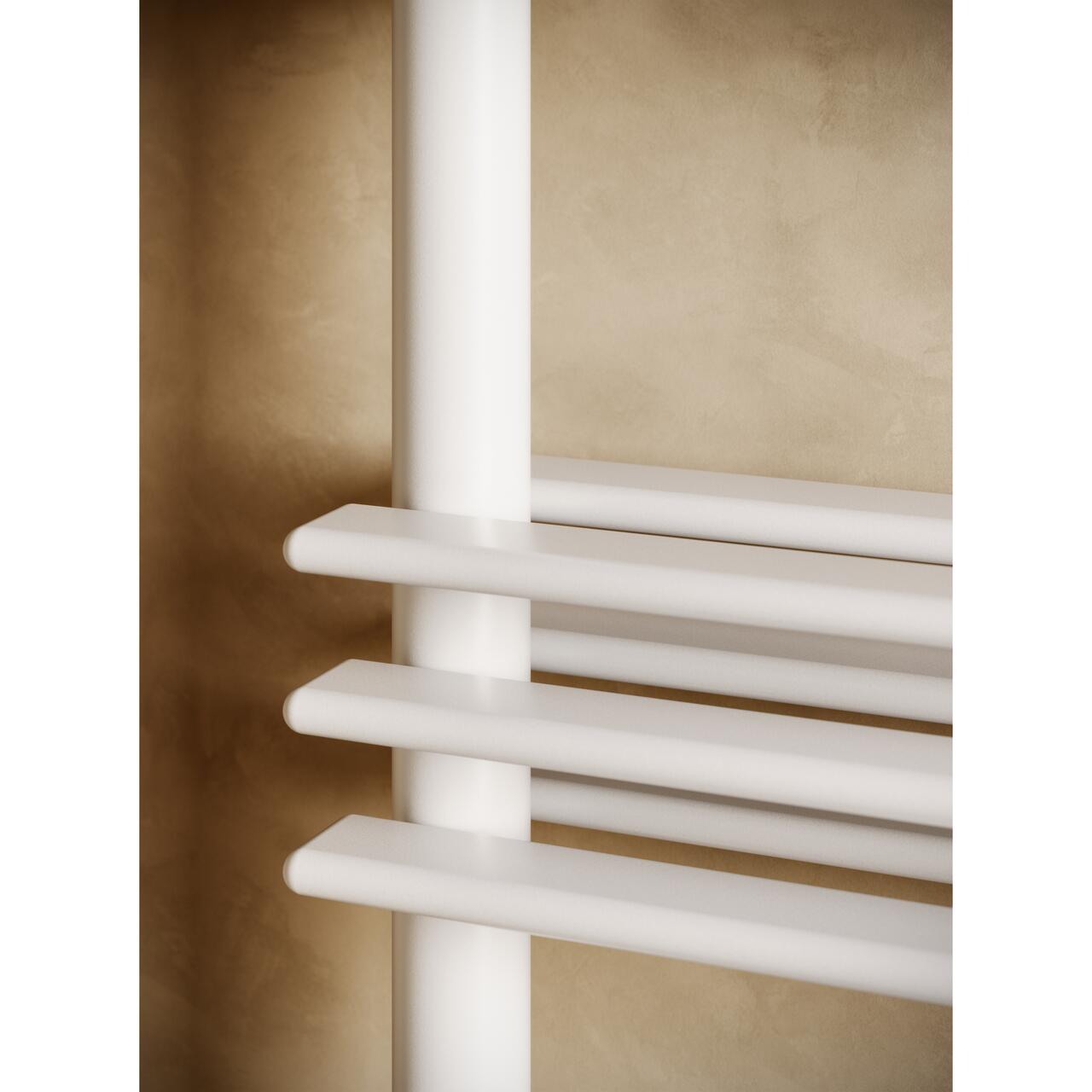 Designerul James di Marco ne surprinde cu o abordare neasteptata pentru radiatorul portprosop Shelf 70 al producatorului italian CALEIDO. Radiatorul este compus din bare verticale rotunde si tevi plate orizontale cu latimea de 70 mm.