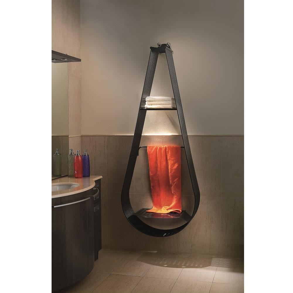 Acesta este realizat din tevi rotunde curbate la care se adauga si raft pentru prosoape. Forma sa originala te incurajeaza sa te apropii. De fapt, la dimensiunea cea mai mare, are chiar si un scaun de metal sa te poti aseza. Odata asezat inauntru, caldura te dezmiarda si te simti protejat.