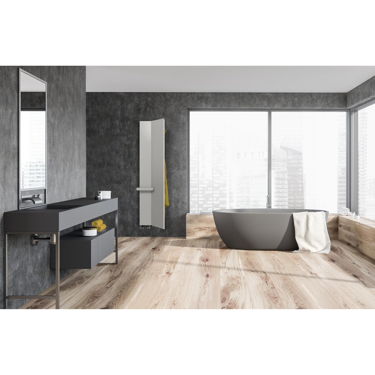 Acest calorifer a fost creat cu ideea de a ascunde prosoapele si halatul din campul vizual din baie, fara a folosi pereti sau usi care culiseaza. Solutia gasita este simpla si practica: panoul radiant este impartit in doua pentru a crea o aripa separata, care se departeaza de perete iar pe spate poti amplasa oriunde doresti 2 carlige magnetice.