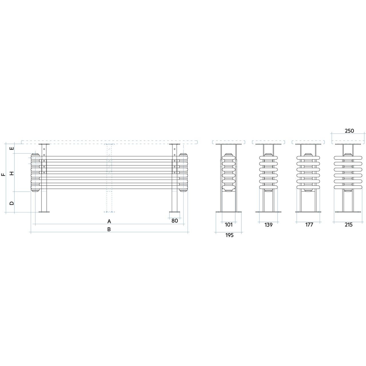 Tesi Bench este versiune particulara, tip banca, a caloriferului clasic Tesi. Acest calorifer decorativ este disponibil cu 3, 4, 5 sau 6 coloane iar numarul elementilor poate fi 4, 5, 6, 7 sau 8.