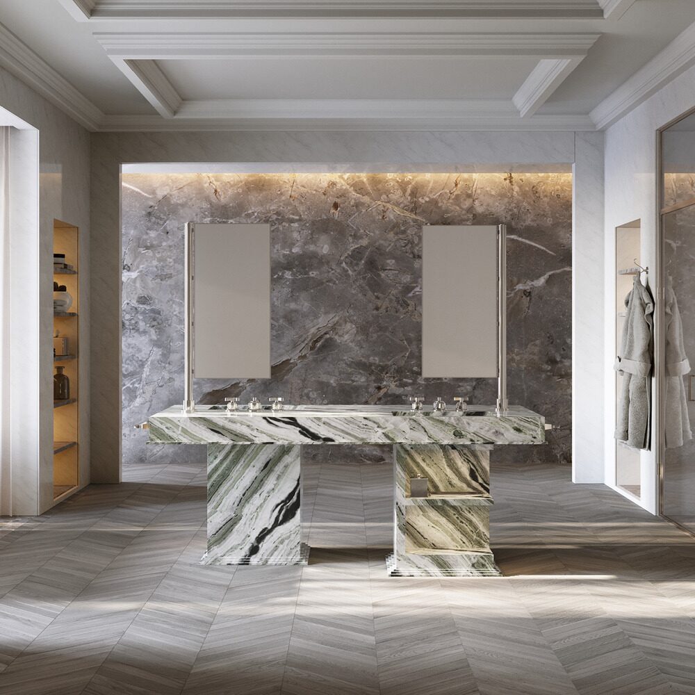 Devon&Devon are cultura designului in AND-ul sau, compania fiind creata de catre doi arhitecti. Iar aceasta se reflecta in doua avantaje majore. Primul este acela ca putem observa colectii exclusiviste, complete si coordonate, atat pentru baie (ce includ obiecte sanitare, baterii, sisteme de dus, accesorii de baie, mobilier de baie, oglinzi, corpuri de iluminat, tapet, gresie si faianta) cat si pentru restul casei (tapet, marmura, ceramica, parchet, articole decorative si de lifestyle). Al doilea beneficiu este numit “D&D Tailored Interiors”, un serviciu unic oferit de acest brand pentru a concepe solutii personalizate pentru fiecare client.