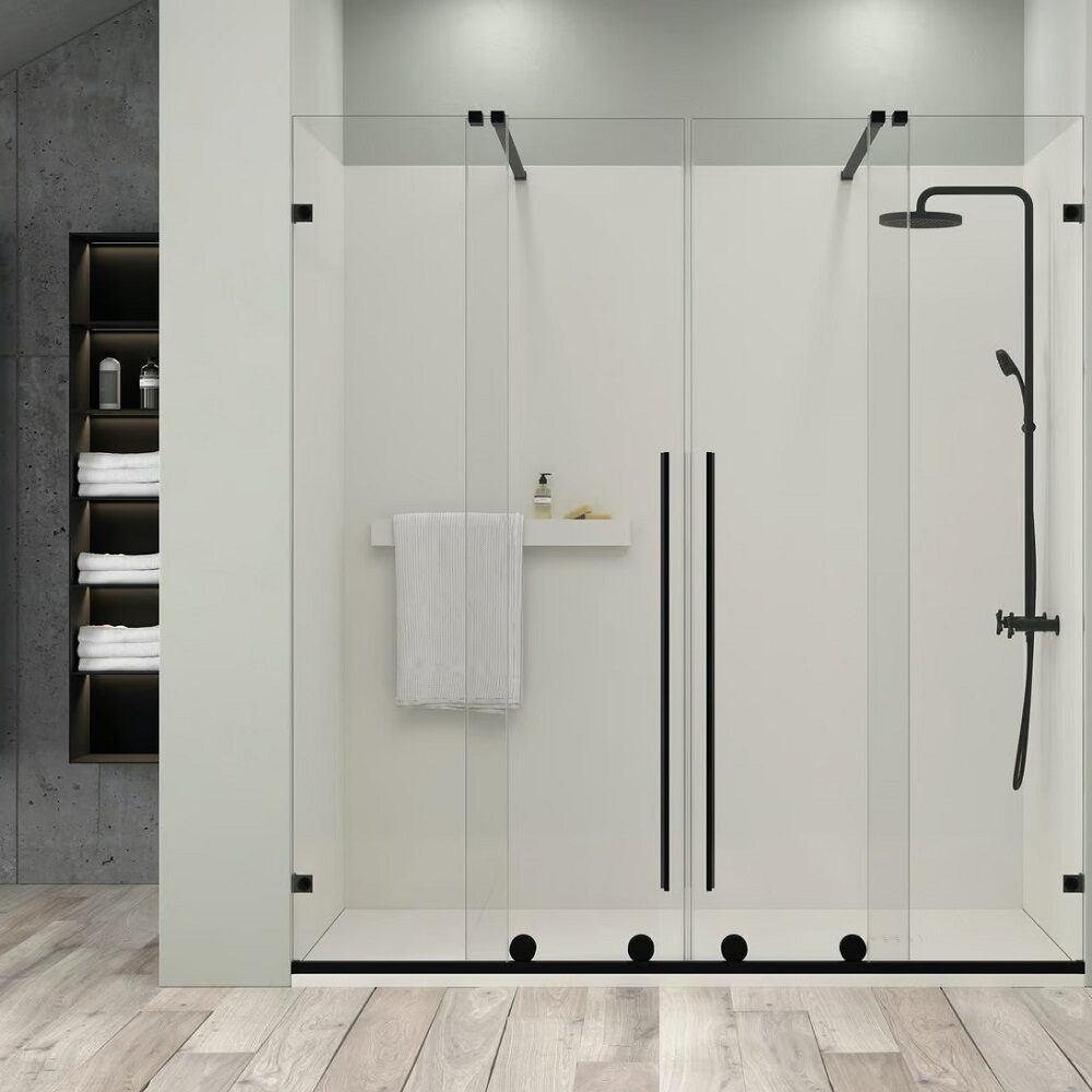 Doccia Danubio cabina de dus frontala negru mat sticla transparenta
