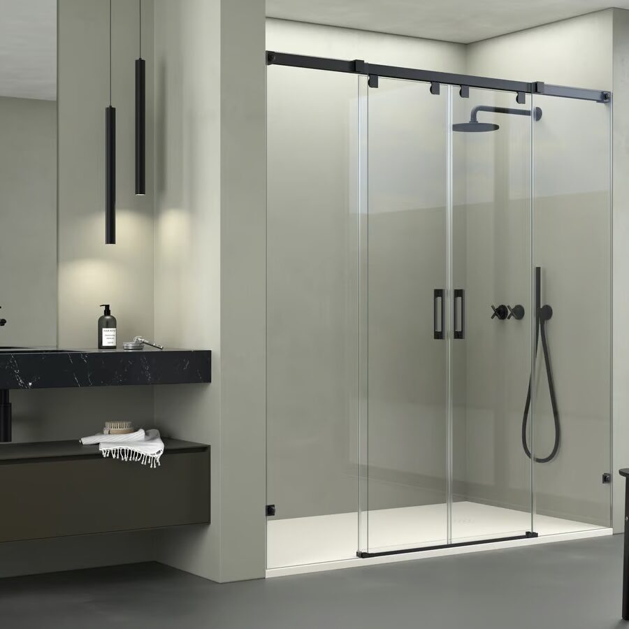 Doccia Nassau cabina de dus frontala culoare negru sticla transparenta