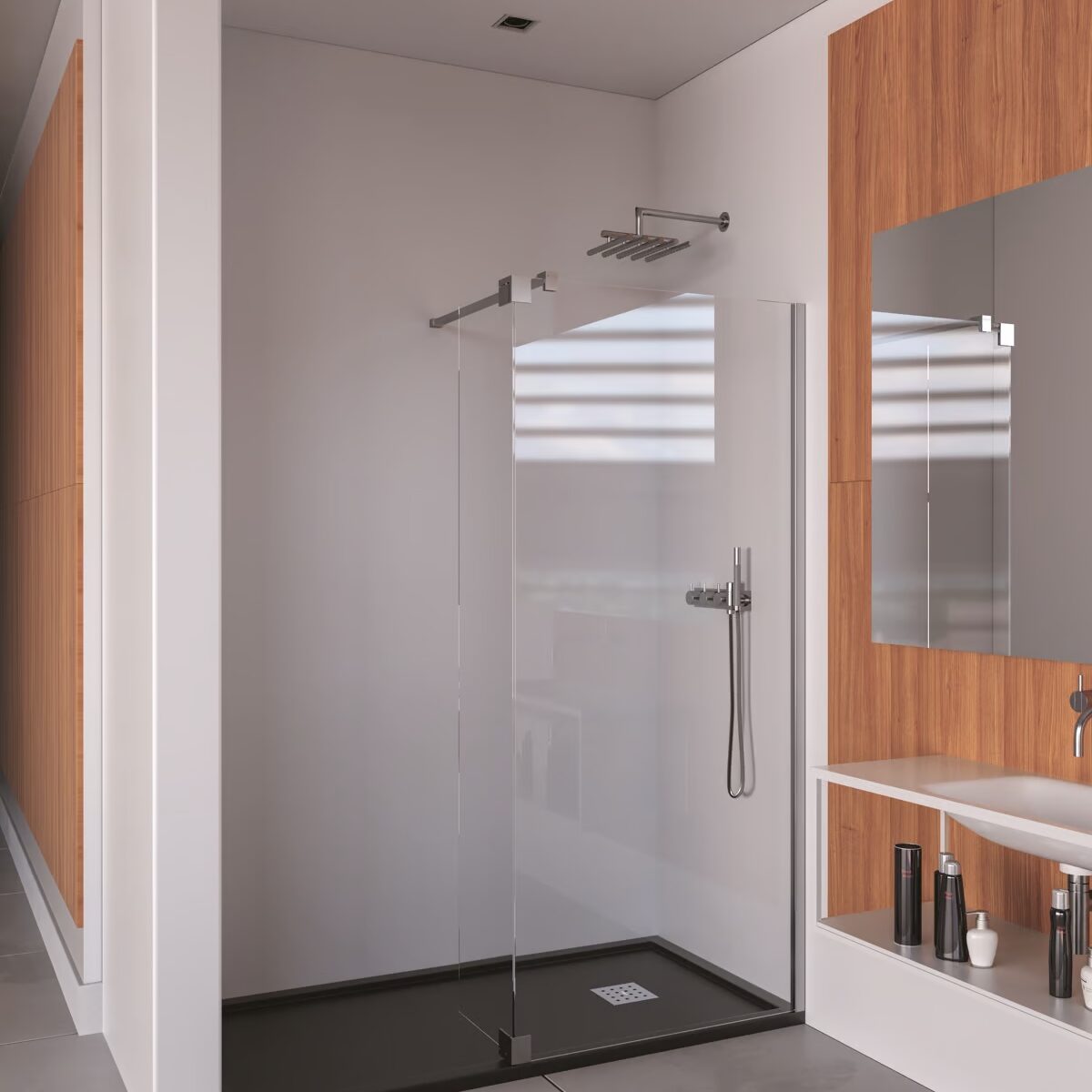 Orlando este un paravan de dus tip Walk-in cu inaltimea 195 cm format din 2 module: 1 paravan fix de 90 cm+1 deflector de 30 cm care impiedica raspandirea stropilor in bai. Sticla este de 8 mm, securizata, cu tratament anticalcar. Profilul de perete permite extinderea cu pana la 20 mm foarte utila cand peretii nu sunt perfect drepti si e nevoie de ajustare.