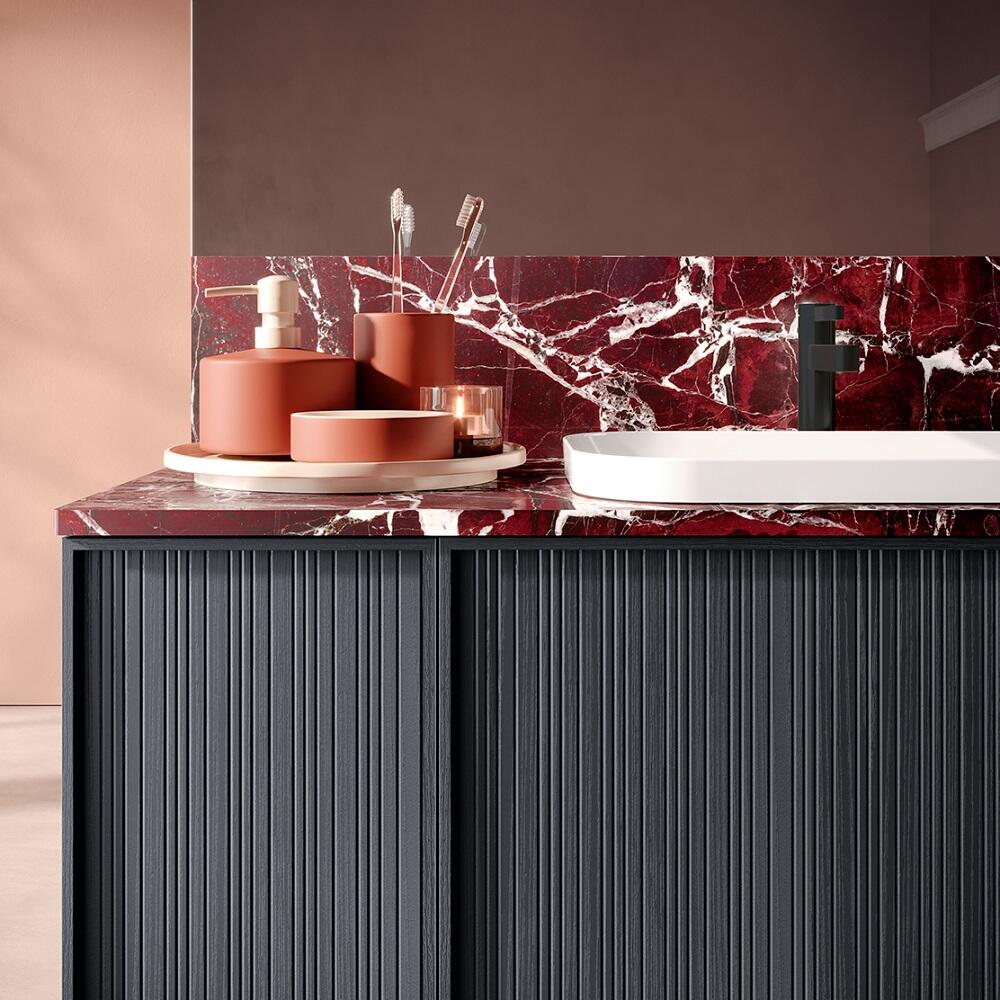 Mobilierul de baie EBAN iti aduce un stil de viata armonios, cu forme si materiale deosebite, care isi pastreaza valoarea in timp. Lemnul, materialul folosit prin excelenta, iti aduce o experienta tactila, putand sa simti venatura lui, caldura, sustenabilitate (folosind lemn eco) si adevar (este realizat din lemn real, din copac). Iara cesta este combinat adesea cu piatra naturala de cea mai buna calitate, pentru a aduce frumusete si spirit practice.