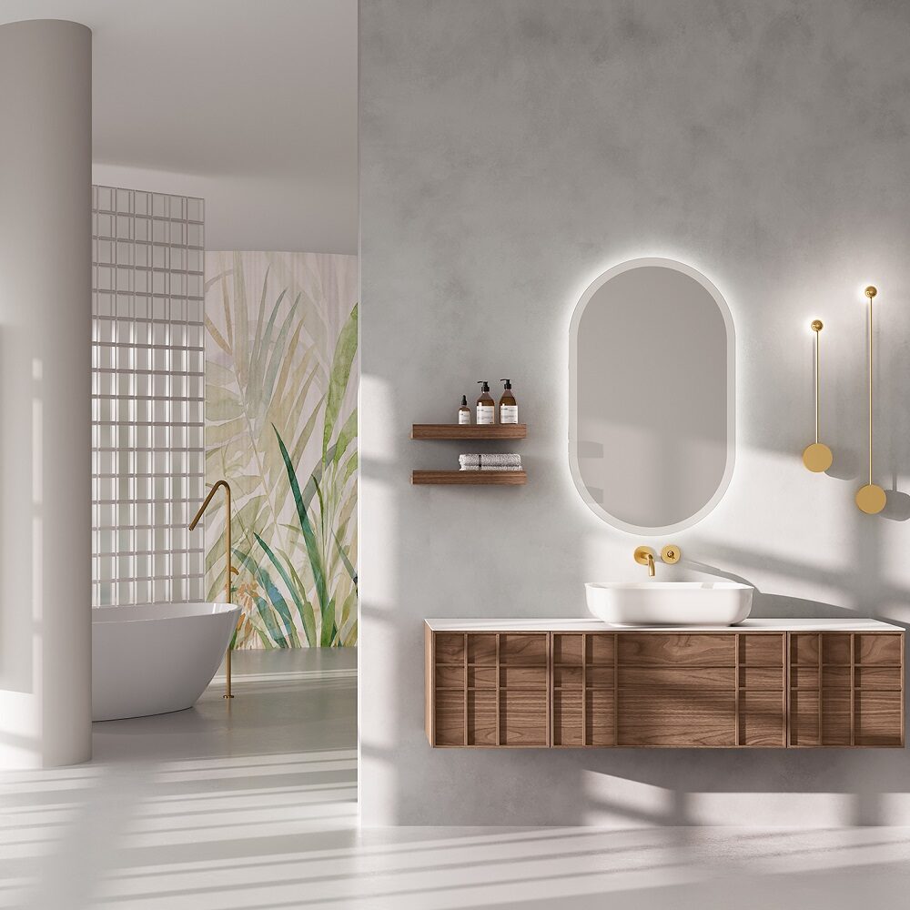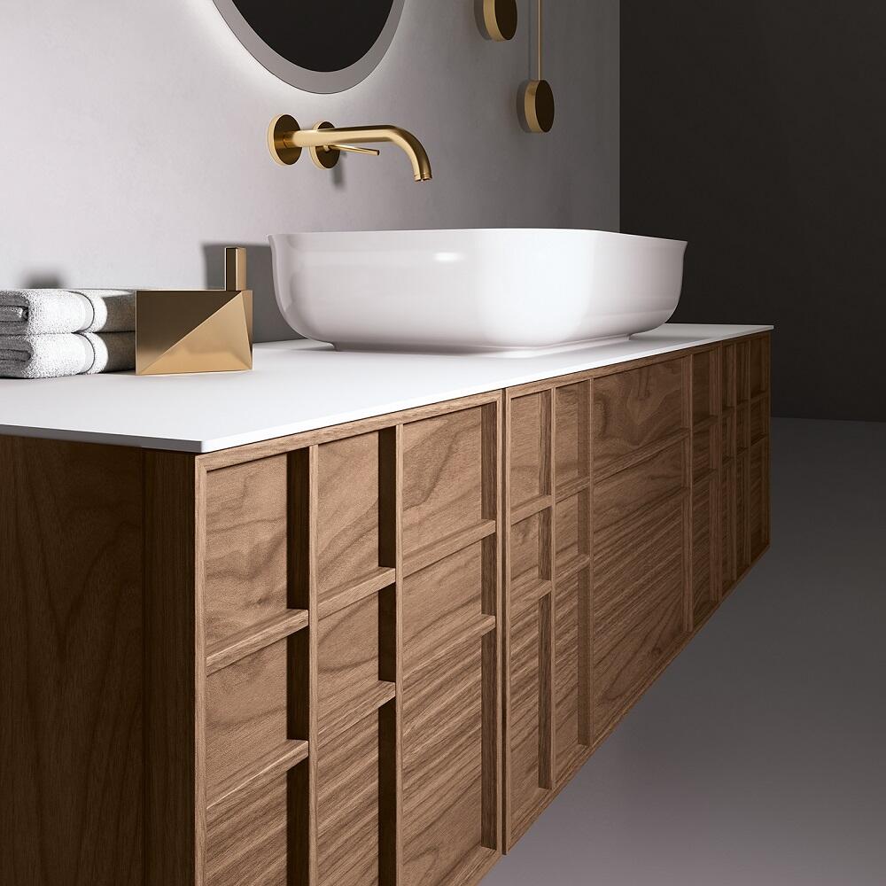 Mobilierul de baie EBAN iti aduce un stil de viata armonios, cu forme si materiale deosebite, care isi pastreaza valoarea in timp. Lemnul, materialul folosit prin excelenta, iti aduce o experienta tactila, putand sa simti venatura lui, caldura, sustenabilitate (folosind lemn eco) si adevar (este realizat din lemn real, din copac). Iara cesta este combinat adesea cu piatra naturala de cea mai buna calitate, pentru a aduce frumusete si spirit practice.