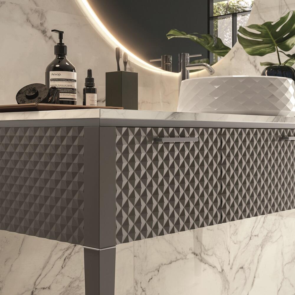 Mobilierul Lame este personalizabil in multiple dimensiuni si finisaje. Contacteaza-ne pentru a putea sa alegem impreuna varianta cea mai potrivita pentru proiectul tau de design interior al unei bai de lux.