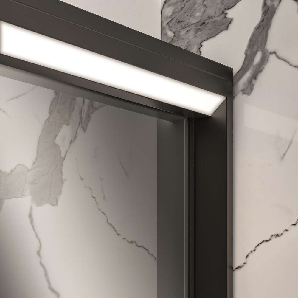 In variantele din imagini avem mobilier sub lavoar suspendat cu 2 sertare cu front din lemn masiv Noce Canaletto in finisaj Cannete, blat din material compozit in finisaj 320 Nero Atlante mat ce imita marmura, cu lavoar integrat, oglinda cu rama metalica neagra si lumina LED.