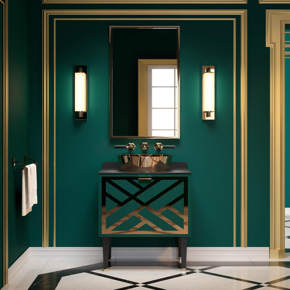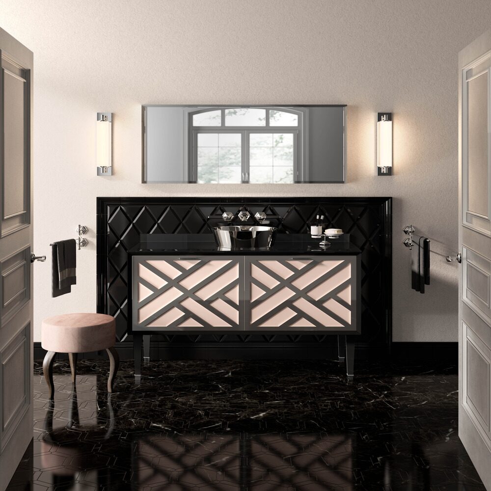 Mobilierul de baie lux PARK AVENUE reprezinta o fuziune de forme si culori ce ne amintesc de stilul Art Deco din New York in anii 1920.