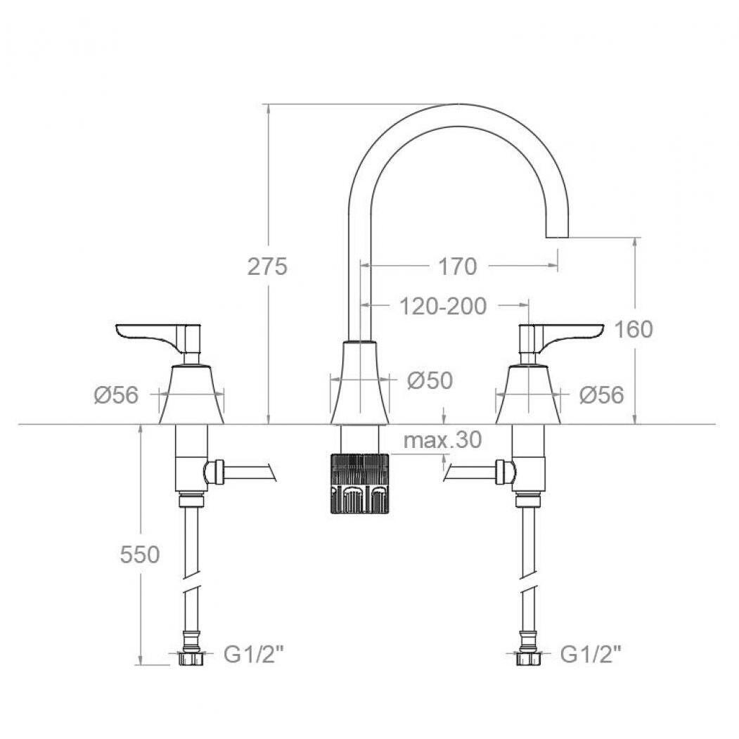 Ramon Soler Adagio baterie lavoar incastrata pipa 17 cm maneta simpla grafit