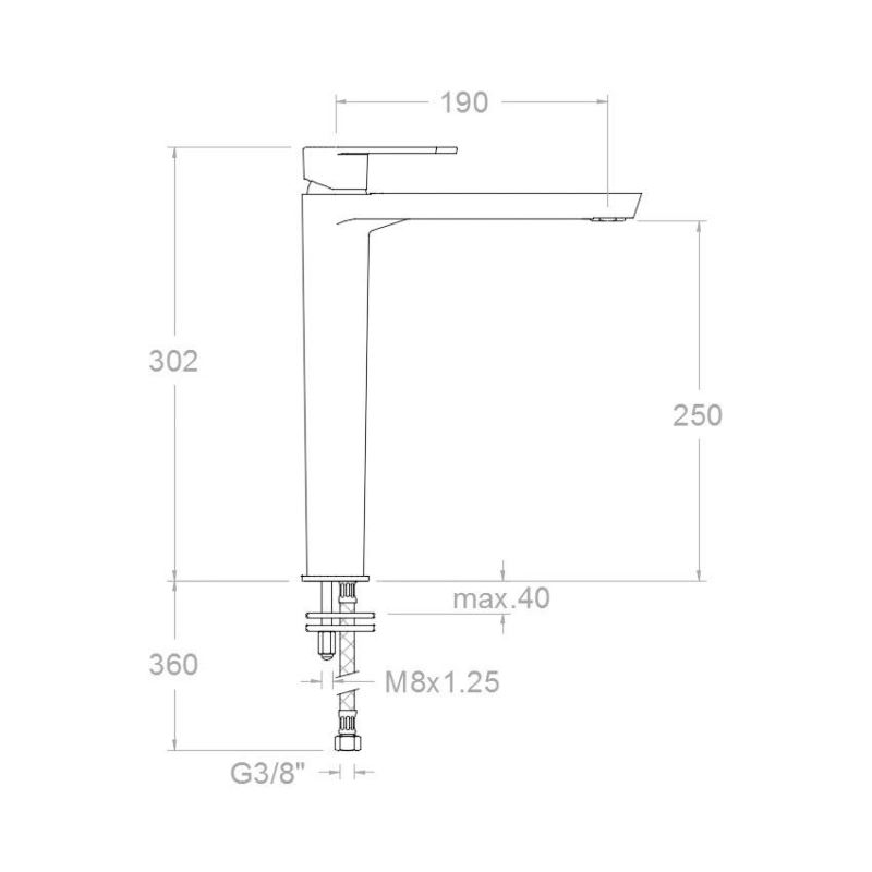 Creatoarea s-a inspirat din formele conice și ergonomice, fiind atentă la toate detaliile pentru a obține un efect delicat și în același timp puternic, cu un corp conic care ajunge să fie încoronat de linii suave și minimaliste. Volumele robinetului și setul de dimensiuni ale pieselor sale fac din aceasta baterie de baie o armonie ideală, realizând un confort total pentru utilizator.