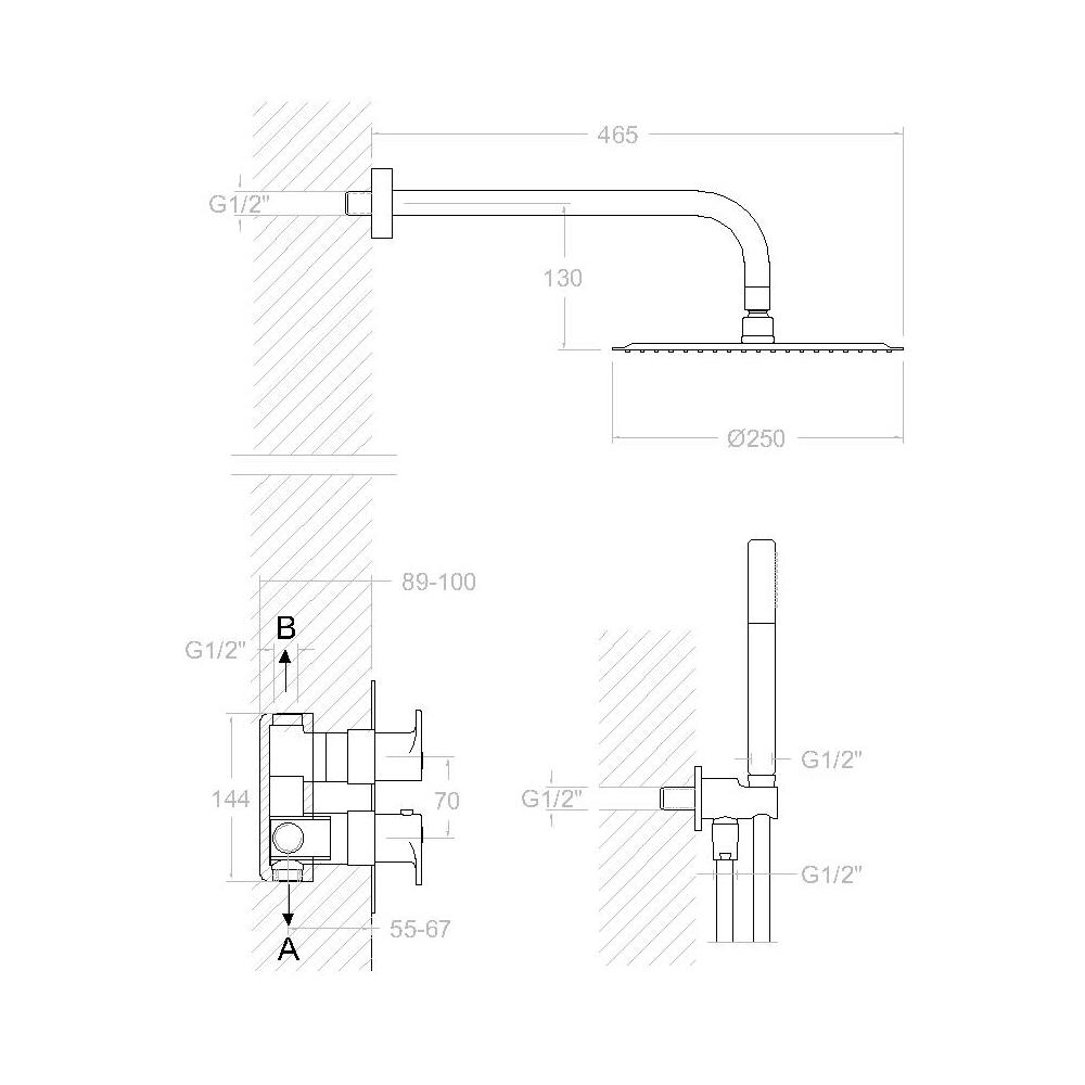 Ramon Soler Drako kit dus incastrat termostatat 2 cai crom