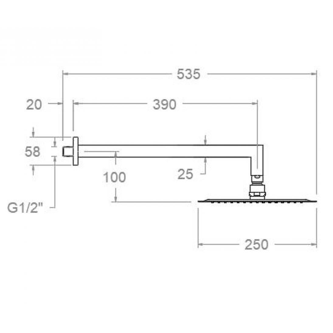Ramon Soler Hidroterapia palarie dus superslim patrata inox 250 mm crom cu brat montaj perete