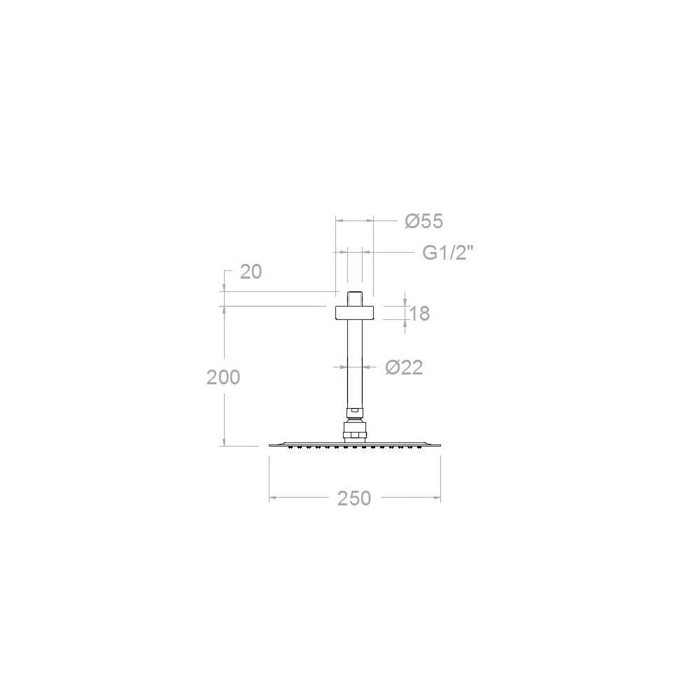 Ramon Soler Hidroterapia palarie dus superslim patrata inox 250 mm crom cu brat montaj tavan