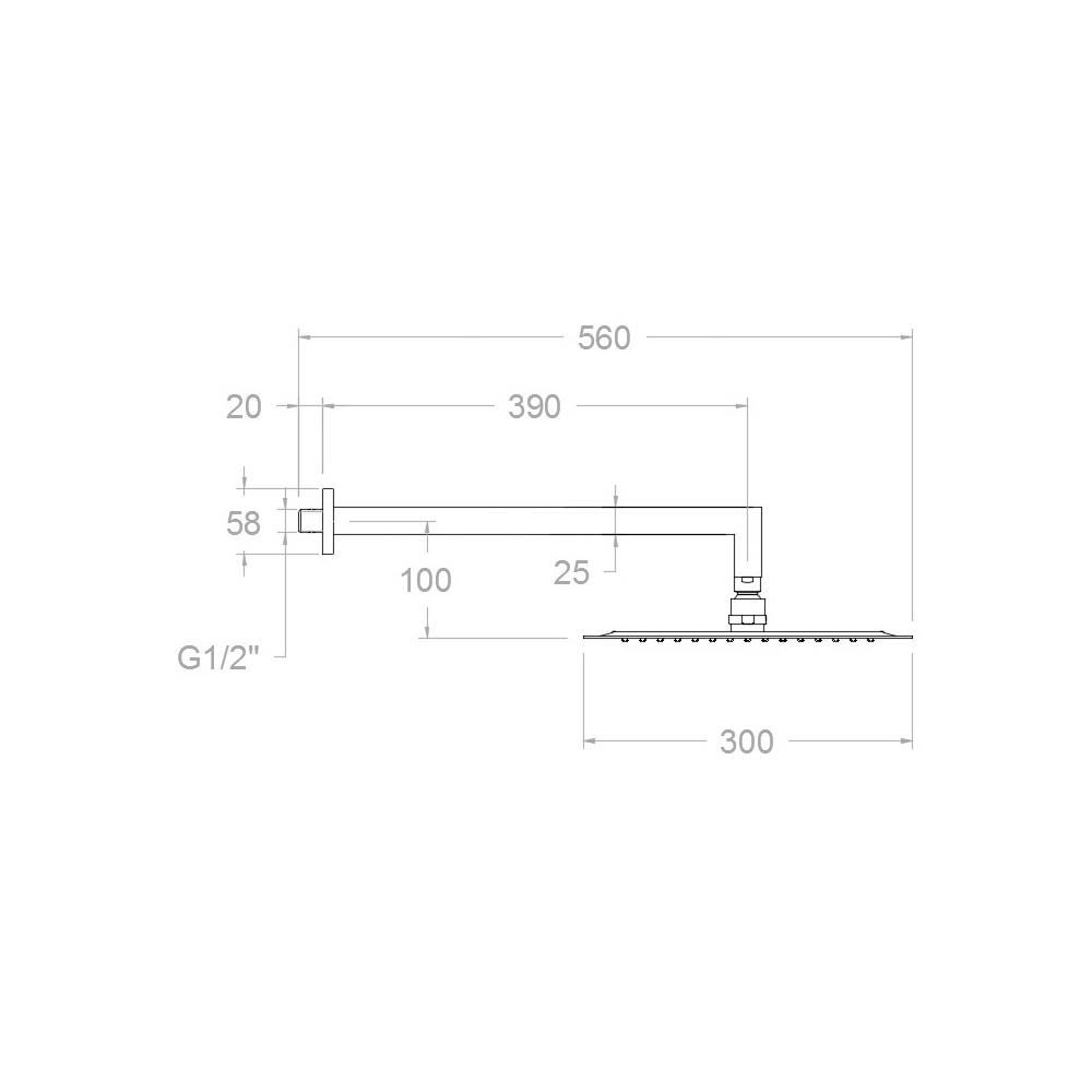 Ramon Soler Hidroterapia palarie dus superslim patrata inox 300 mm crom cu brat montaj perete
