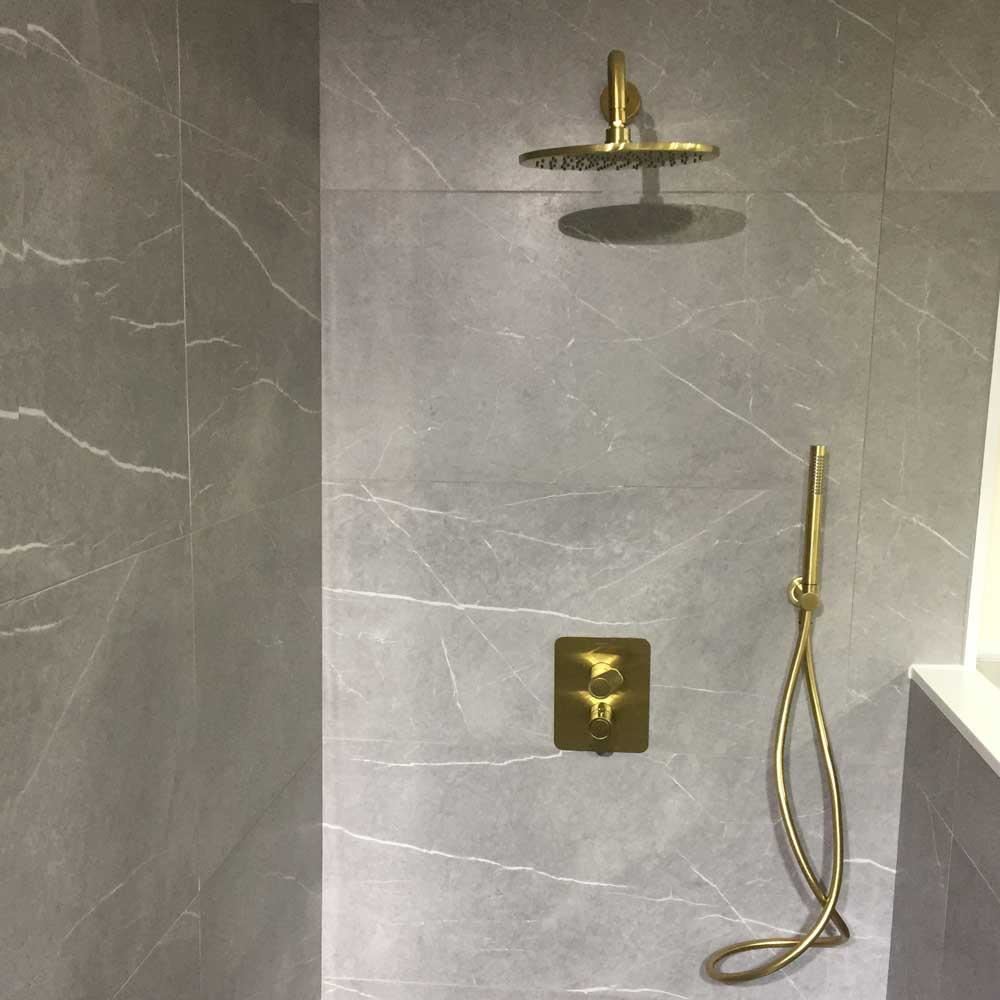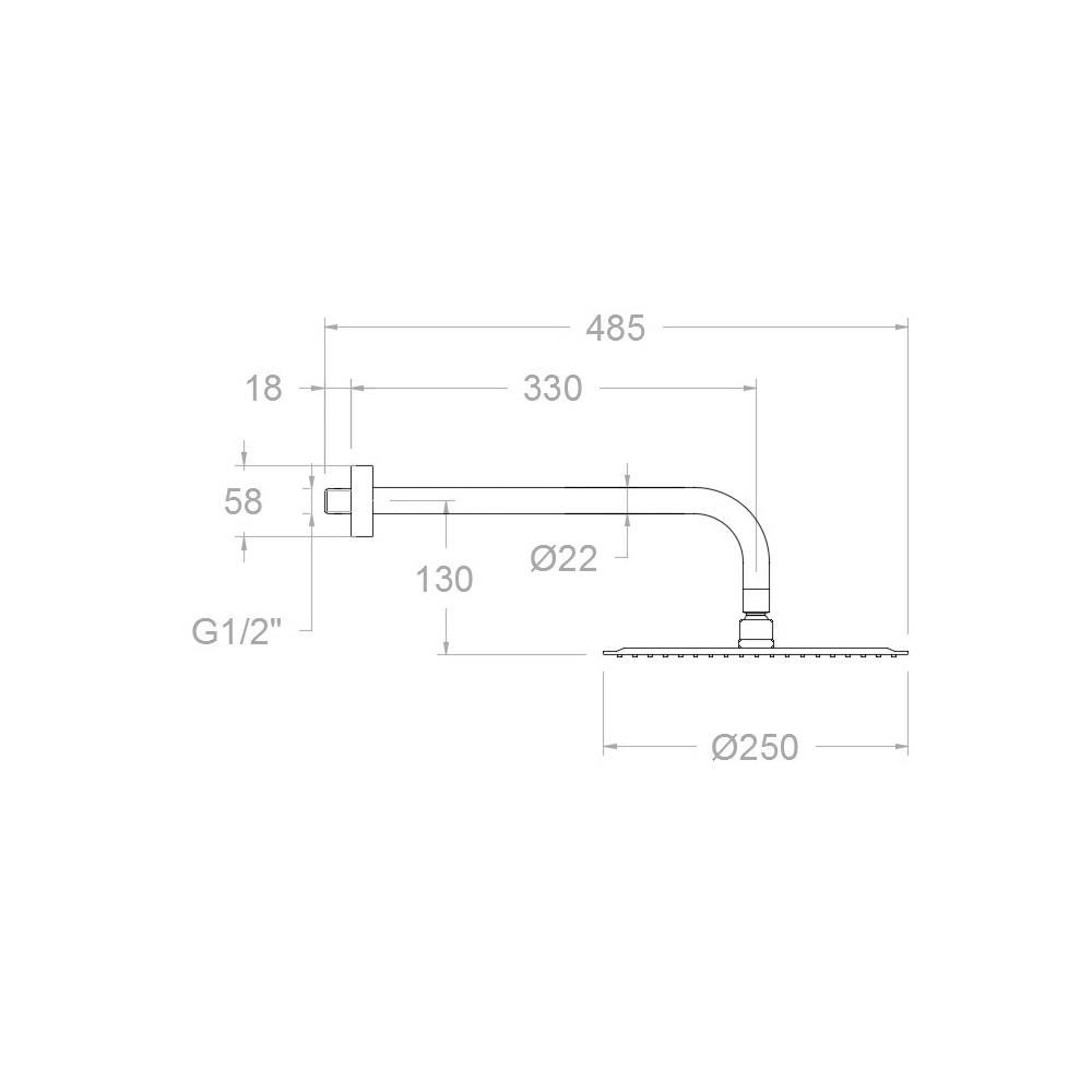Ramon Soler Hidroterapia palarie dus superslim rotunda 250 mm auriu periat cu brat montaj perete