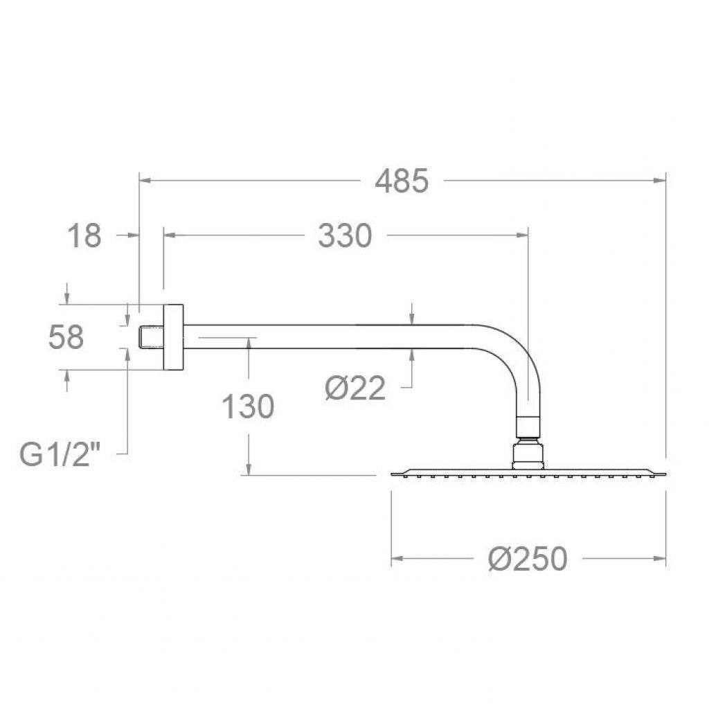 Ramon Soler Hidroterapia palarie dus superslim rotunda inox 250 mm crom cu brat montaj perete