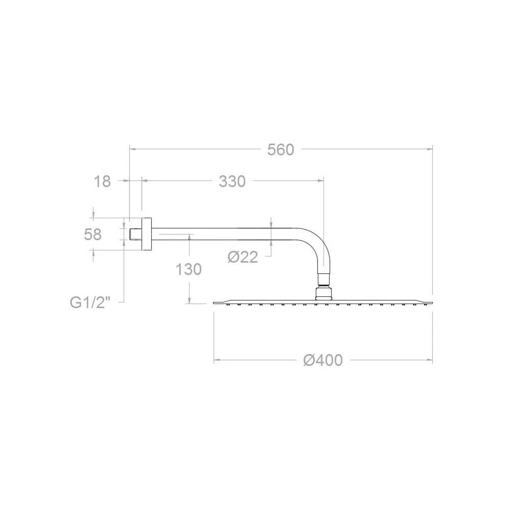 Ramon Soler Hidroterapia palarie dus superslim rotunda inox 400 mm crom cu brat montaj perete