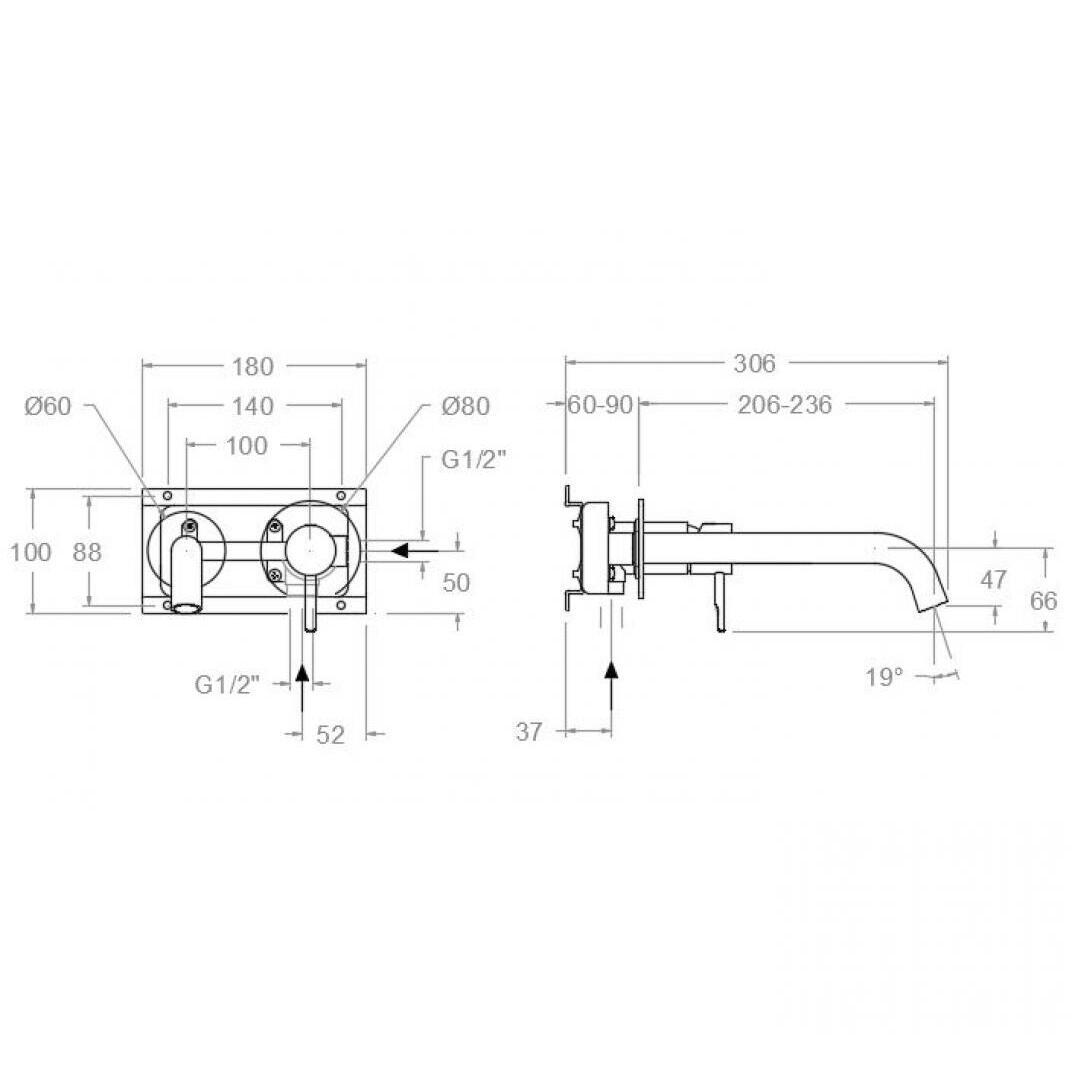 Ramon Soler Odisea baterie lavoar incastrata perete pipa 24 cm negru mat