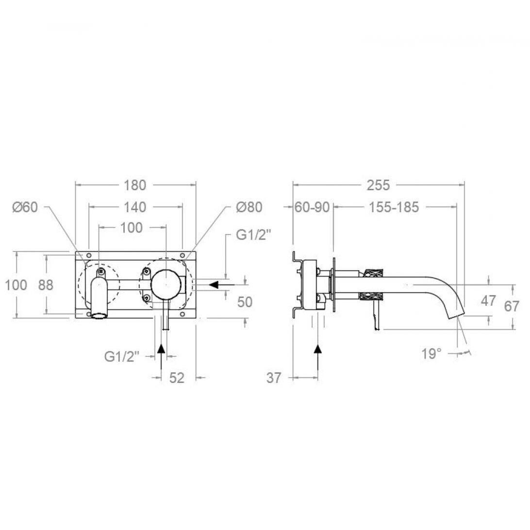 Ramon Soler Odisea Joya baterie lavoar incastrata perete pipa 19 cm grafit