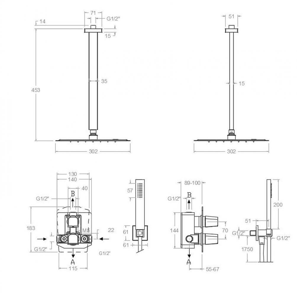 Ramon Soler Kit de dus incastrat termostatat 2 cai gun metal