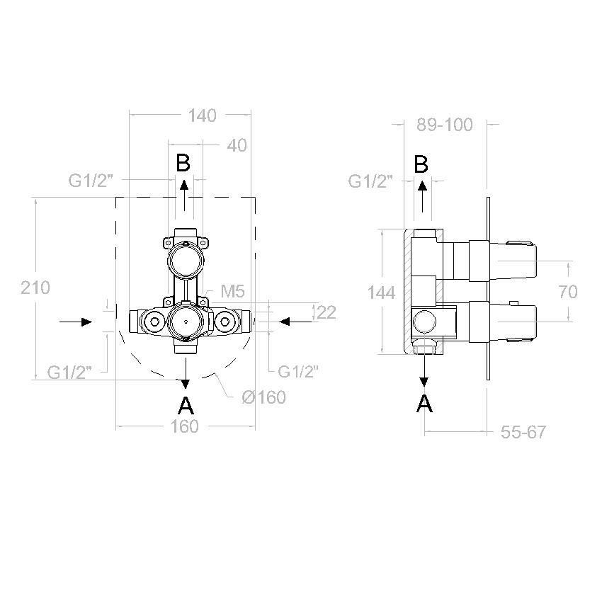 Ramon Soler Tzar baterie dus incastrata termostatata 2 cai negru mat