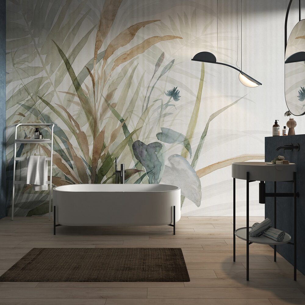 Pentru acest tapet baie materialul folosit pentru printare tapet este H2O, din fibra de sticla, rezistent la apa. De aceea un tapet baie H2O poate fi instalat in baie si in orice mediu caracterizat de un grad ridicat de umiditate. Este important faptul ca un tapet baie H2O poate fi instalat chiar si in contact direct cu apa, precum in interiorul cabinei de dus sau in apropierea cazii.
