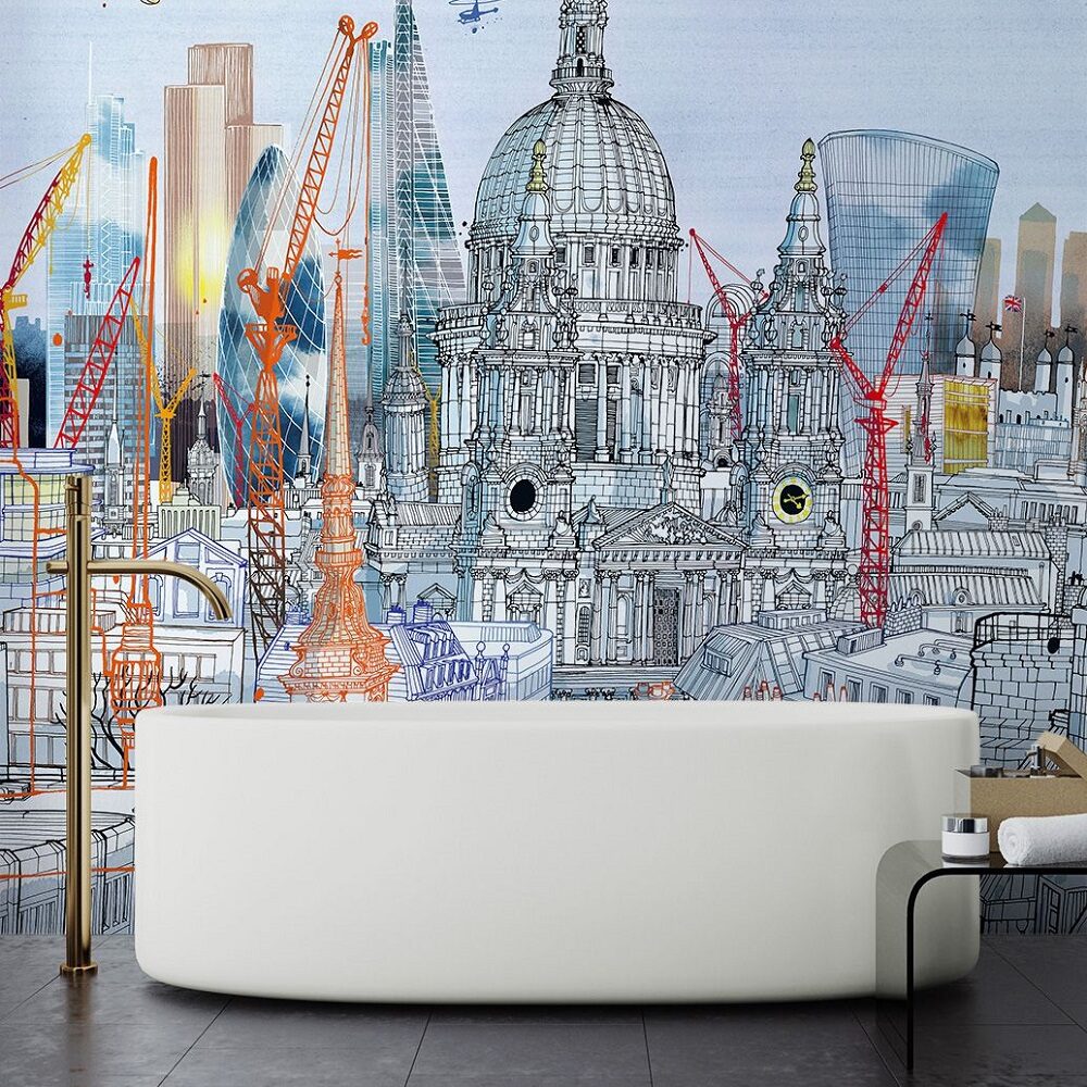 Saintpaul skyscrapers este un model de tapet baie creat de catre Carlo Stanga pentru brandul italian WallPepper.
